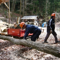 やまんば薪ストーブクラブ森の中には、落ちた種から自然に発生した若木がありますが、大きな木が太陽の光を遮り成長することができません。2~3年前からはカシノナガキクイムシにより立ち枯れた大木も多数みられるようになりました。枯れた木は、森に差し込む日光を遮るだけでなく、成長することができません。つまり二酸化炭素を吸収することができないのです。 |